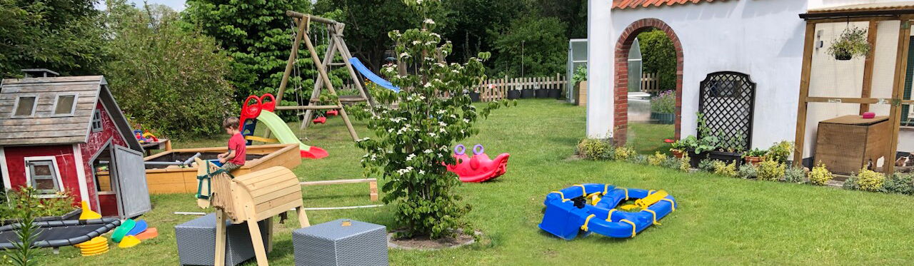 Den Kindern stehen hierbei Teile unseres Hauses, sowie der große, kindgerechte Garten mit verschiedenen Haustieren, Obst- und Gemüseanbau und vor allem vielen Spielgeräten zur Verfügung.